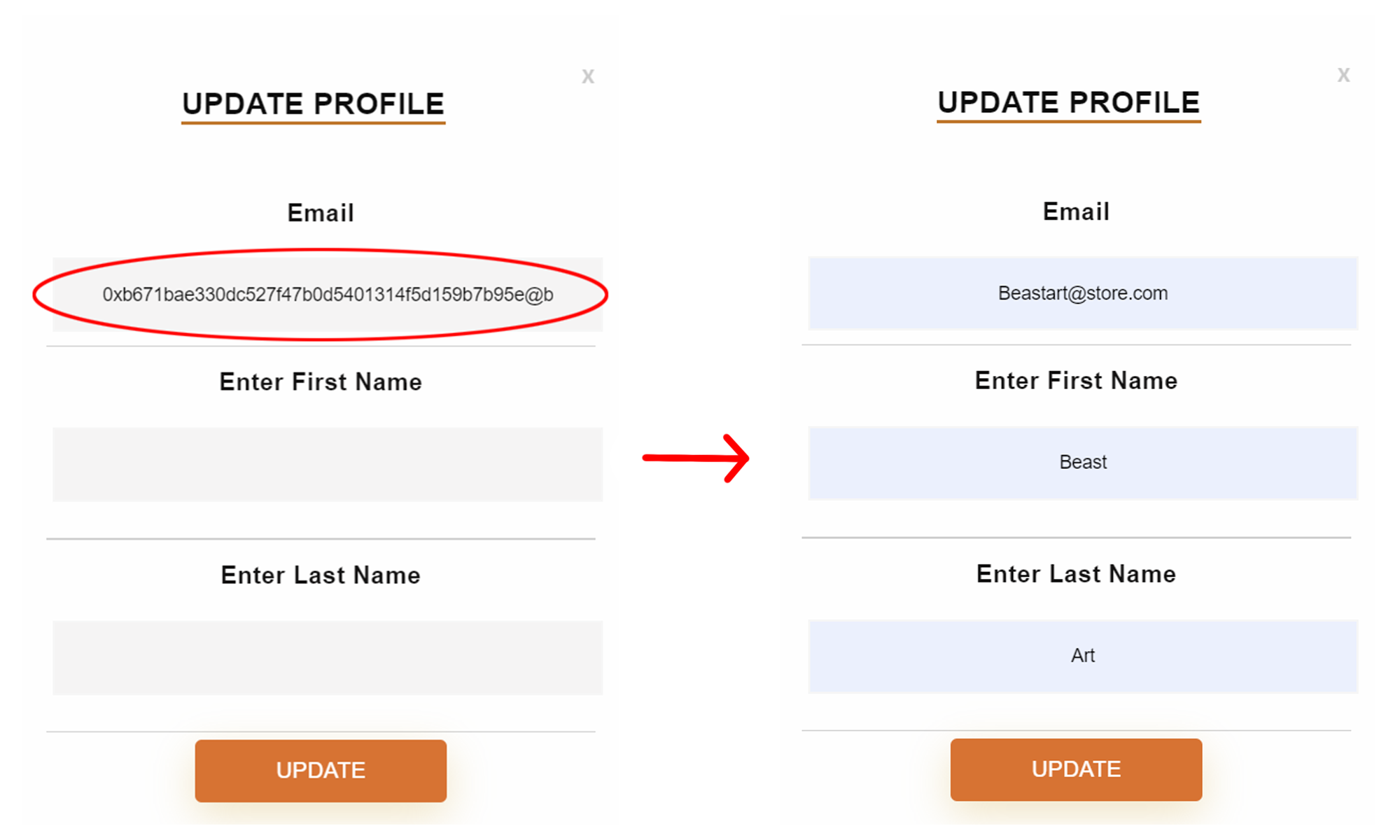 A pop up will appear. If you want to replace the placeholder email with your real email you can do it here. This is not really necessary but in order to receive emails you can change it. All the information you would receive via email is also visible in your account on the website.